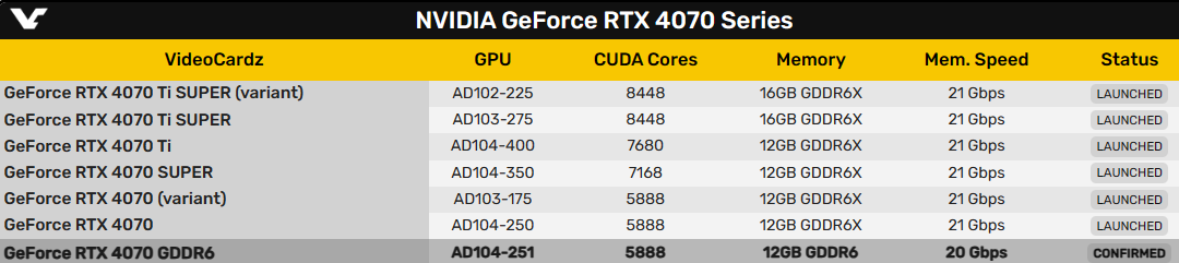 RTX 4070 GDDR6的发布时间不详,估计会非常低调,AIC品牌直接发售。