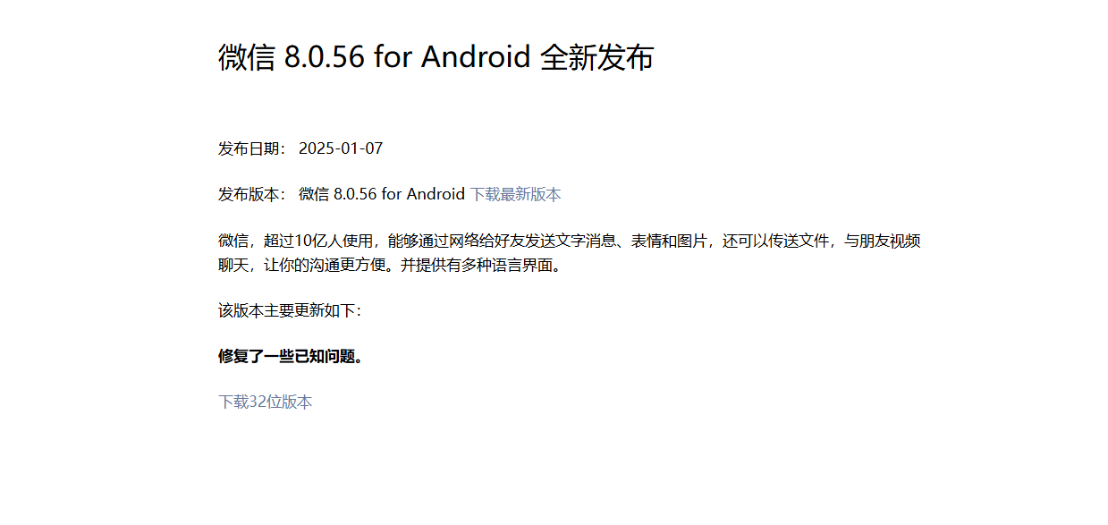 日前,微信安卓版迎来8.0.56正式版更新,这是2025年首次版本更新。关于更新内容,依然是那9个字:“修复了一些已知问题”。虽然官方没有公布具体更新内容,但体验后发现,新版增加了朋友圈视频倍速播放等功能,并对好友资料页面进行了调整。