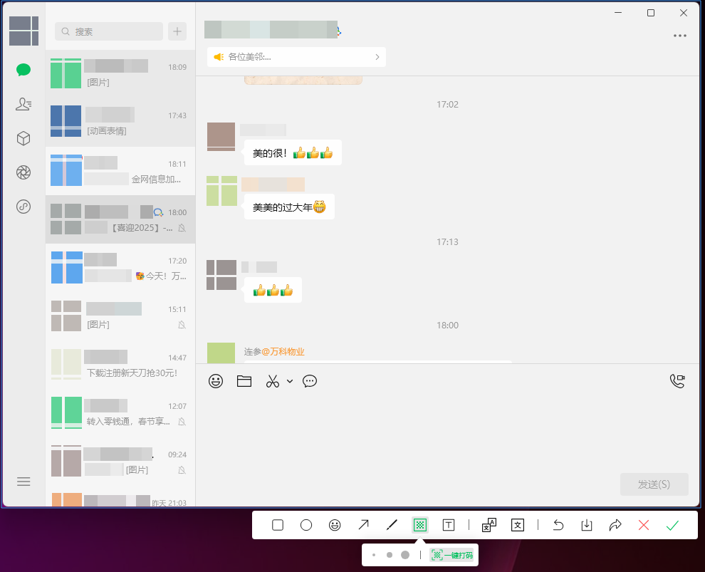 微信截图后,可以看到马赛克新增了一键打码功能,会自动识别隐私内容进行打码。