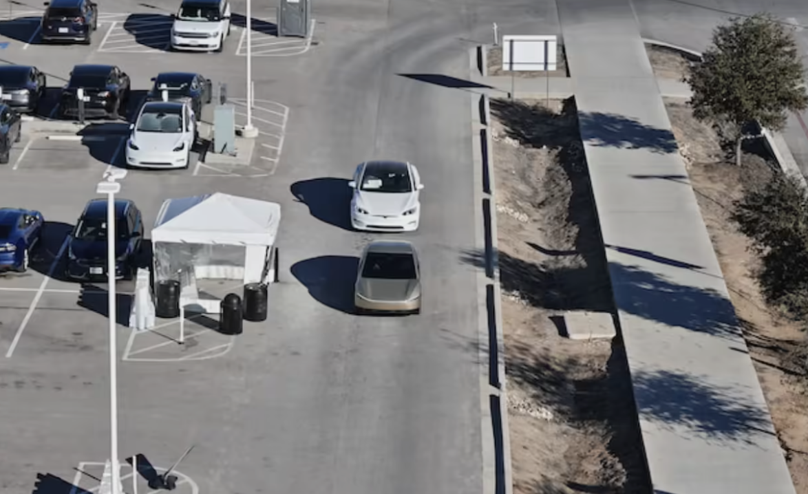 海外博主通过无人机拍摄到特斯拉CyberCab无人驾驶出租车的测试车现身美国得州超级工厂。这款测试车与此前发布的无方向盘版本不同,配备了方向盘。
