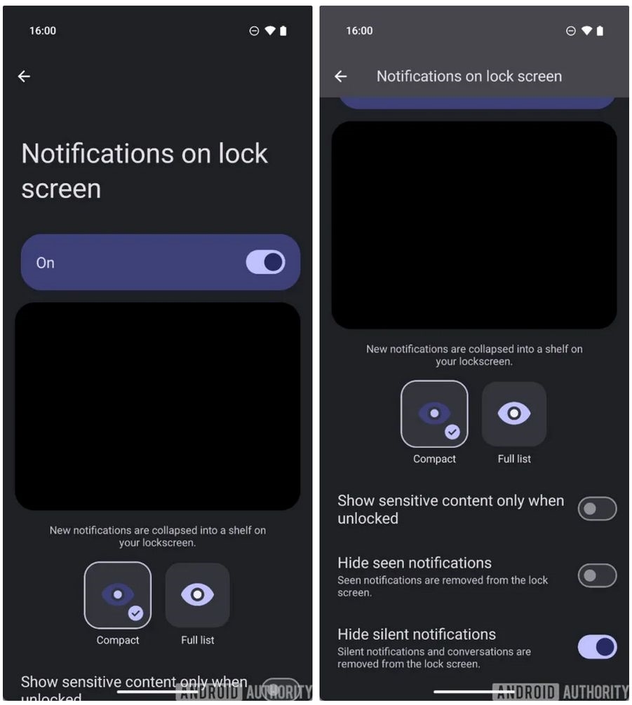 此外,Android 16还新增了“隐藏已读通知”和“隐藏静默通知”选项,自动隐藏已查看的通知和静音通知,减少锁屏界面的信息干扰。