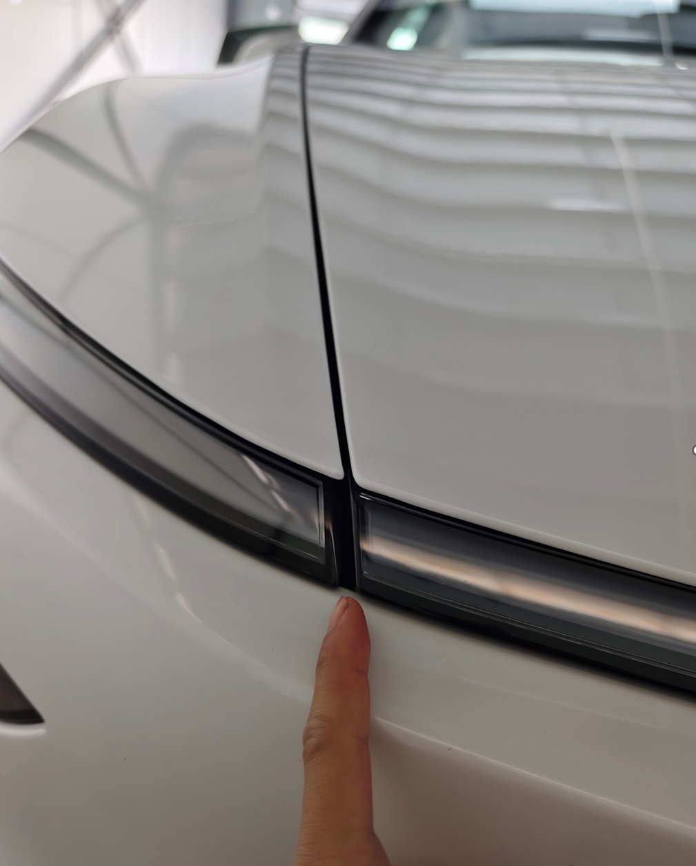 虽然咱也知道它是从 Cybertruck 借鉴过来的,但它没有像 Cybertruck 那样做成一体式,而是成本更低的三段式,灯带之间的间隙还不小。