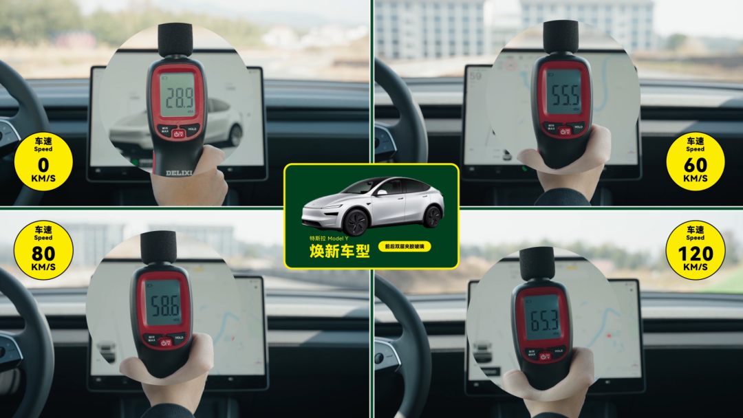 我们的实测数据是,车速 60km/h ,新 Y 是 55dB 左右,老 Y 是 61dB 左右;车速 80km/h ,新 Y 是 58dB 左右,老 Y 是 62dB 左右;车速 120km/ ,新 Y 是 65dB 左右,老 Y 是 68dB 左右。