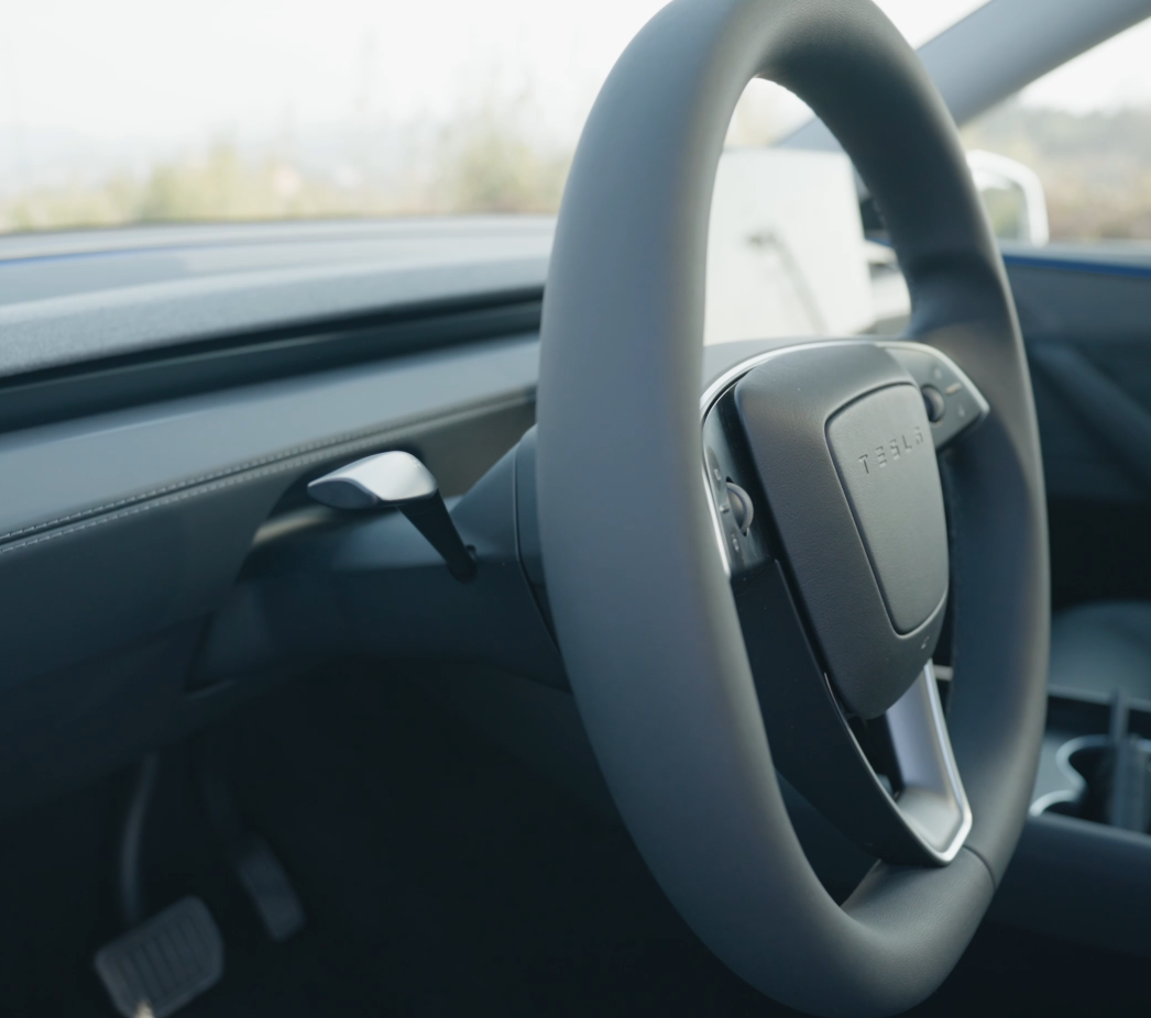 可能是焕新 3 拨杆全砍了后,反响没那么好,这次在新 Y 上,转向拨杆得以保留,而换挡还是屏幕操作。