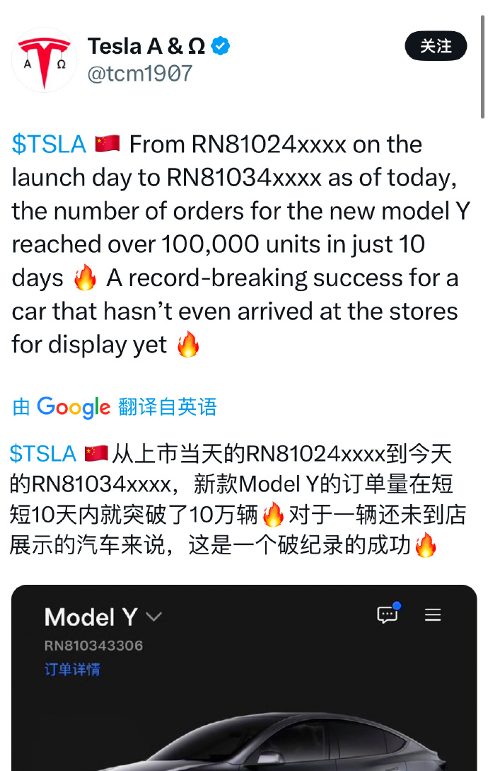 全球最畅销的电车,也是特斯拉今年最为重要的一款车—— Model Y ,卖了 5 年终于改款了。要说这车也真是不缺热度,就那么官网一上架,车子都没到店,订单就爆了。有人根据订单号推算,短短 10 天已经破了 10 万单。