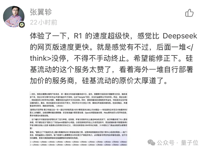 划重点:平台上R1速度体感超过了DeepSeek在Web端的速度,但同时有一些使用体验希望修正。
