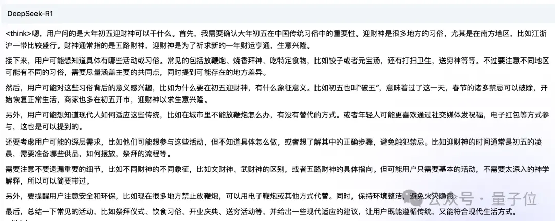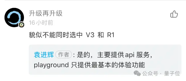 譬如一度出现的“R1触发深度思考概率有点低,发现是prompt和chat template问题,预计傍晚时能升级好”。