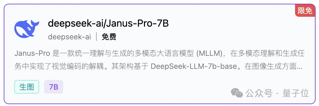 与此同时,DeepSeek的多模态模型Janus-Pro-7B还限免。