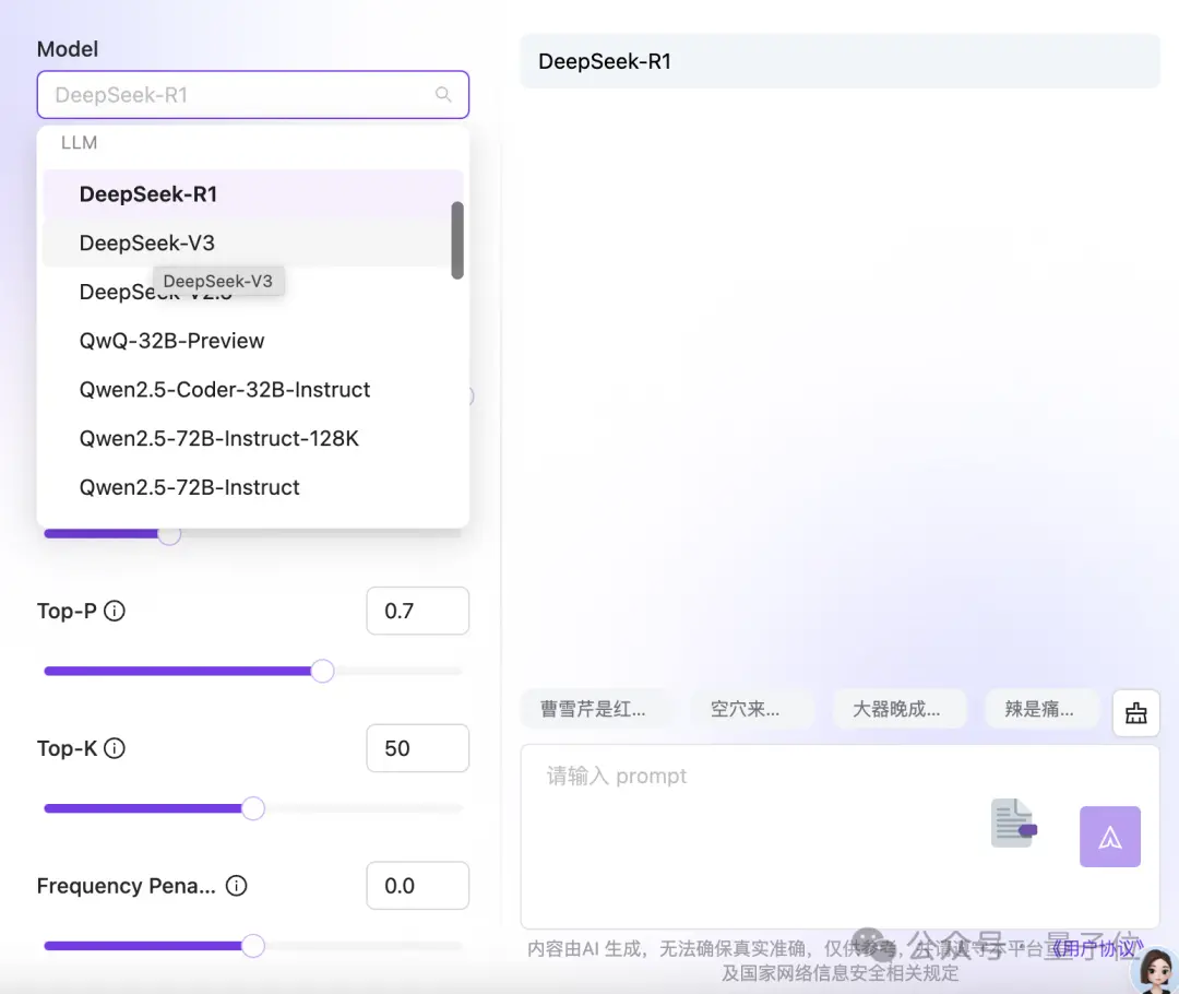 当然,由于主要是为开发者提供API服务,SilionCloud的playground只提供最基础的体验功能。
