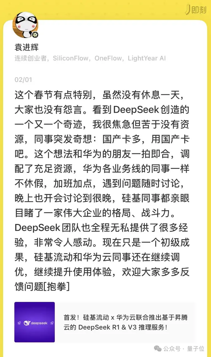 SiliconCloud、华为多条业务线、DeepSeek的同学们,就这么过了一个特别(忙)的春节。