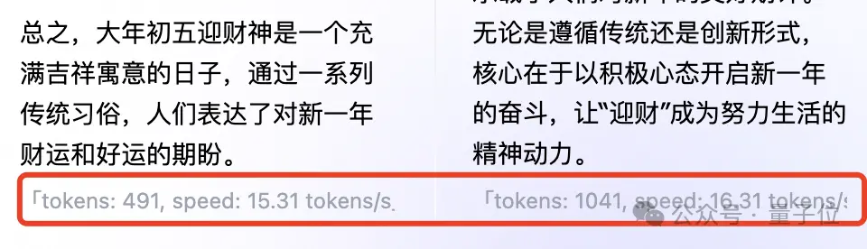 在响应速度上,两个都差不多,每秒15、16tokens输出。