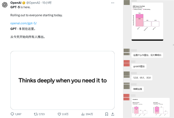 千呼万唤始出来,奥特曼终于端出来了全世界网友都心心念念的GPT-5。不到一天的时间,OpenAI的发布推文就获得了300万阅读,3万点赞;世超的朋友圈、群聊,也全是被GPT-5刷屏的。