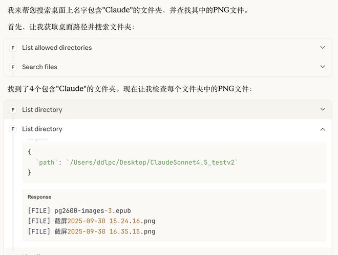 在配置好权限和路径后,和控制 Chrome 一样,Claude Sonnet 4.5 会调用拥有的文件处理工具,像人类一样思考一步一步完成上述的任务。