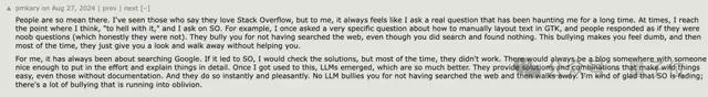 不少程序员直言,社区的氛围有时会令人不舒服,他们现在遇到问题更愿意咨询AI: