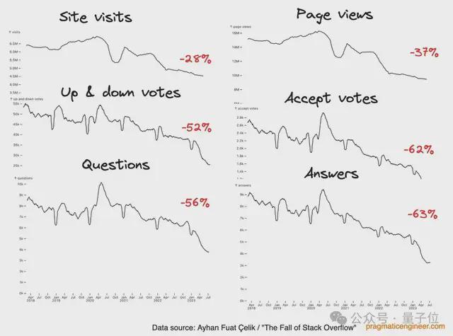程序员在问答网站上的活跃度急剧下降,遇到问题不再第一时间去社区发帖,而是习惯于直接向大模型提问,或者依赖Cursor等智能体自动补全。