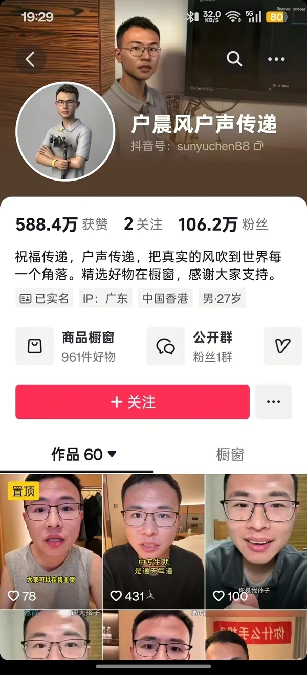 发明“苹果人”“Android人”的网红户晨风全网被封后,正遭遇被销号的情况。现在,有网友发现,网红户晨风的正在遭遇销号,从晒出的图片看,其账号已经不存在,不过目前他的抖音号还没有遭遇这个情况。