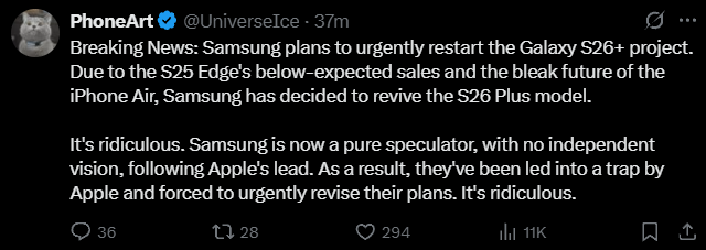 该博主还指出,三星如今更像是个投机者,没有独立远见,只是一味跟随苹果脚步,结果反被苹果引入了一个陷阱,被迫紧急调整计划,实在荒谬。