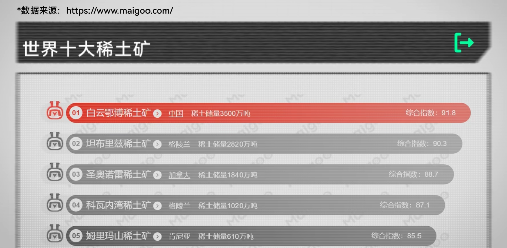 世界国家 —— 世界十大稀土矿