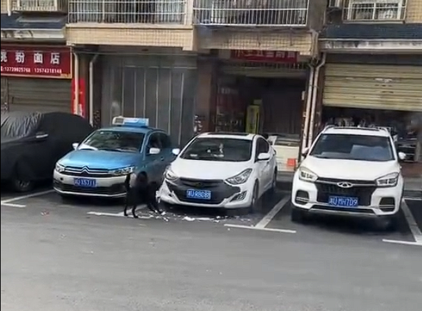 挂断电话后,她第一反应是遭遇诈骗,但出于谨慎还是赶往停车场查看。结果发现自己的白色私家车前方车衣被撕得粉碎,散落一地,车身布满口水与牙齿印。