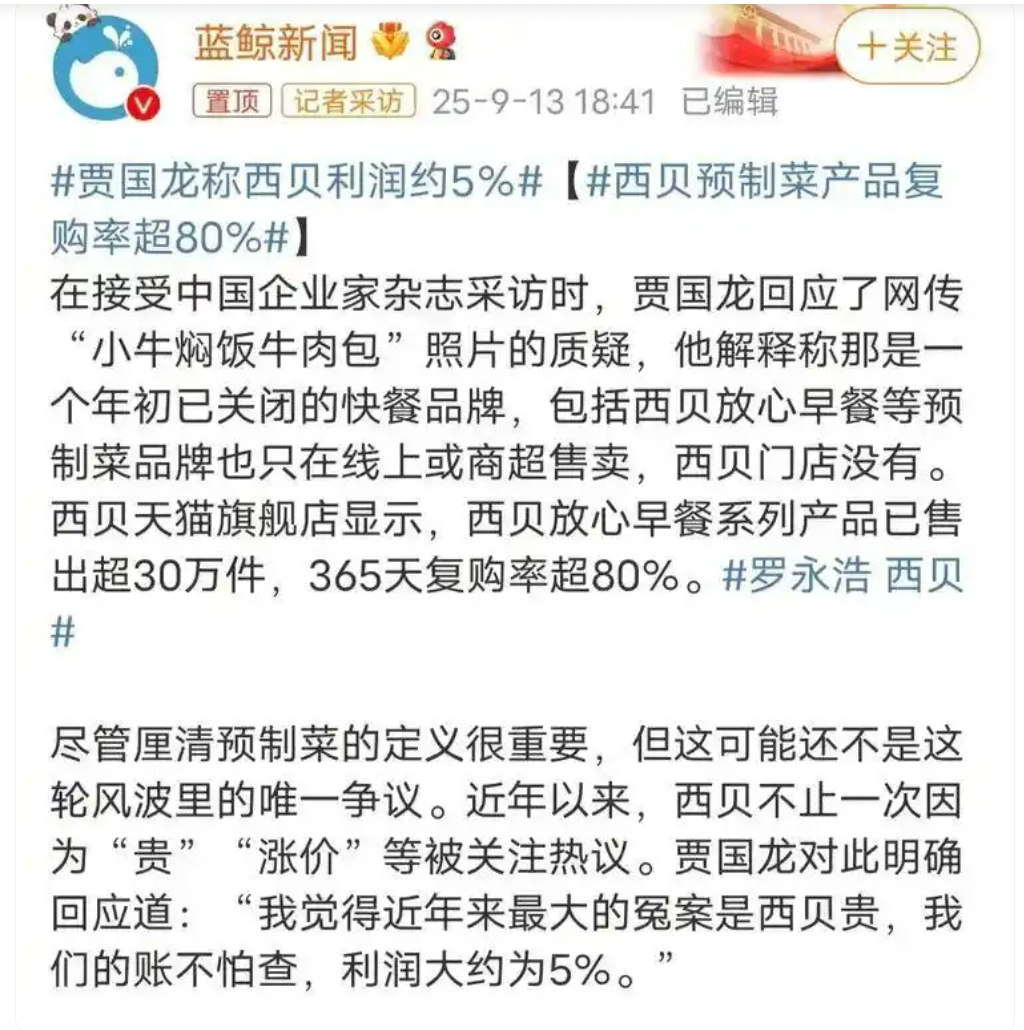 "我们净利润才5%,真不贵!" 之前贾国龙回应记者时的说法。