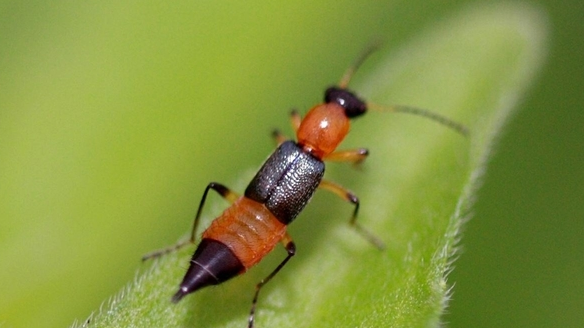 隐翅虫外形细长,体型较小,头部、翅膀和尾部呈黑色,前胸、腹部及足部为橘黄色,形似大蚂蚁,最大个体可达3厘米。这类昆虫昼伏夜出,具有趋光性,常在夏秋季节频繁出现。