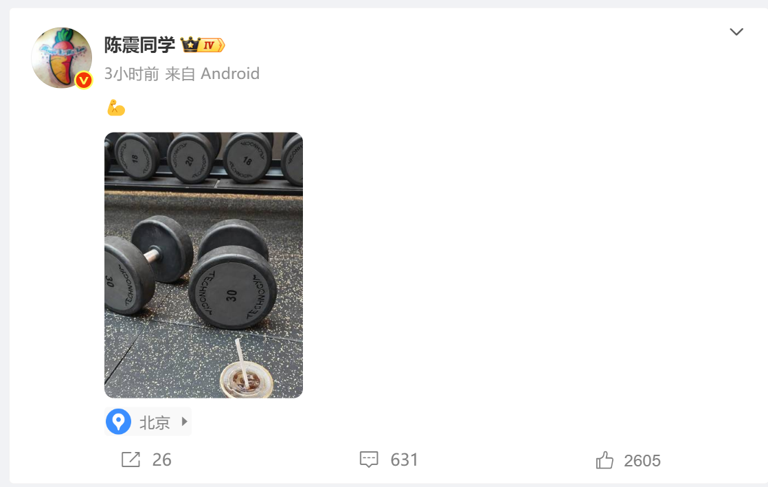 不过从陈震在社交媒体上的更新来看,他本人似乎并没有受上述事件太多的影响。