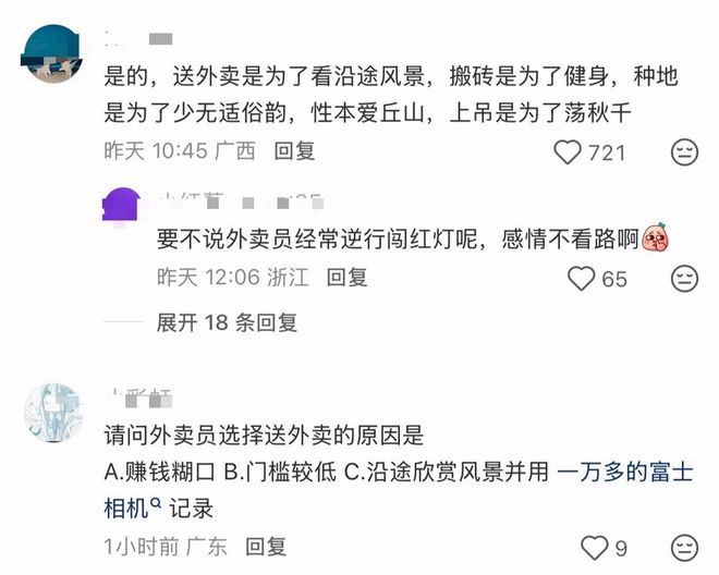 说实话,小雷看到这的时候,觉得还挺正常。毕竟这些年,也有不少坐办公室的打工人离职去当骑手。要么是厌烦了加班文化,要么就是薪酬不到位。当骑手虽然累,但付出的努力都有回报,干得越多,收入就越高。