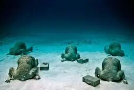 位于墨西哥加勒比海岸,这一片海域有点瘆人,因为其中一个展品叫“寂静的进化”,主体是400多个雕塑人,展现的是人类如何看待周遭的环境。