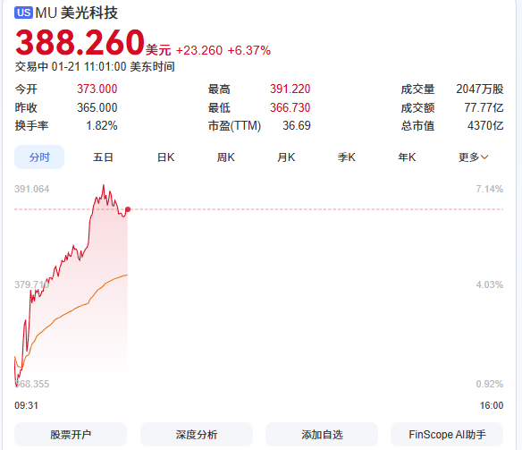 存储行业的“超级牛市”正持续发酵,价格的不断飙升直接推动相关企业股价迎来爆发。今天美股开盘,存储概念板块表现惊艳,概念指数单日大涨4.8%,美光科技、西部数据、希捷科技、闪迪四大行业巨头股价集体创下历史新高。