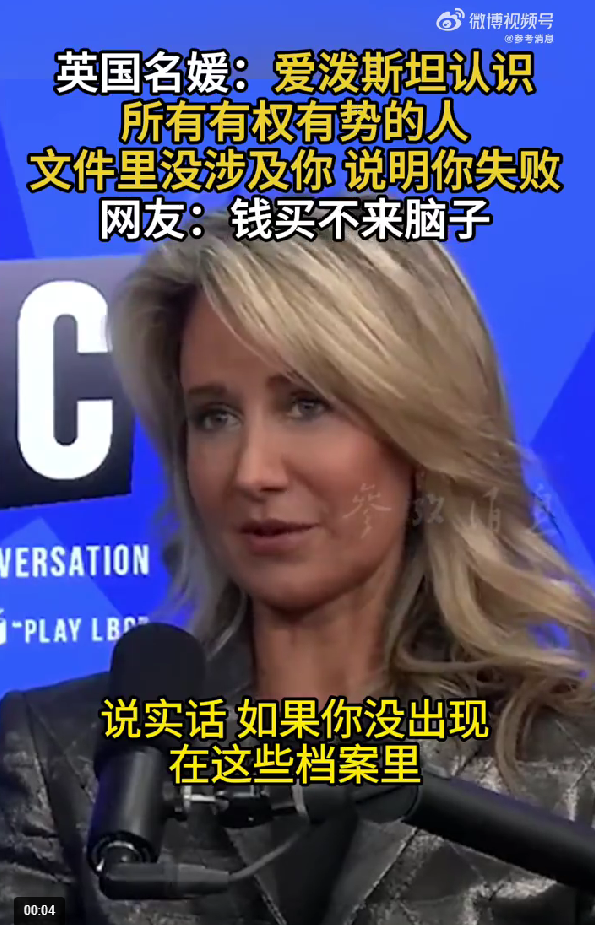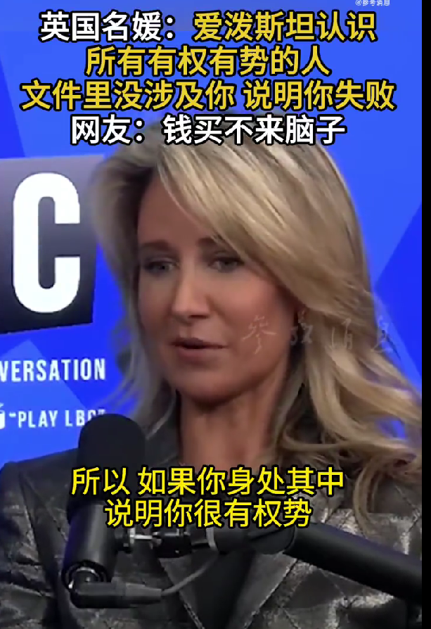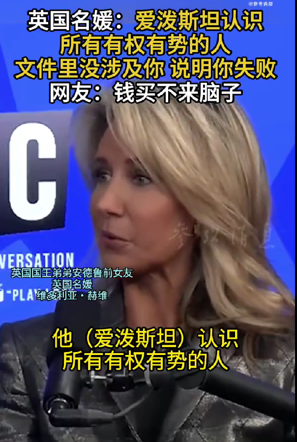 据参考消息援引英媒报道,英国国王弟弟安德鲁的前女友、英国名媛维多利亚·赫维2月6日接受采访时表示,没有被列入爱泼斯坦档案是一种“侮辱”。她说:“他(爱泼斯坦)认识所有有权有势的人。所以,如果你身处其中,而且你很有权势,说实话,如果你的名字没有出现在这些档案里,那是一种侮辱。那就意味着你是个失败者。”