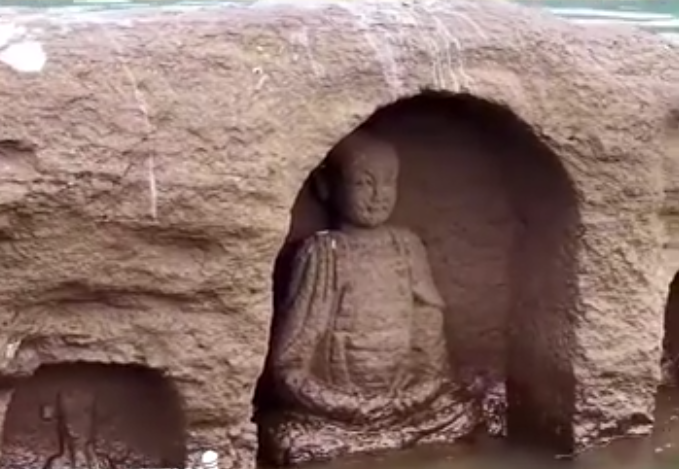 据了解,该佛像位于重庆某江心岛区域,属于明代文物遗存,长期被江水淹没,仅在枯水期偶露部分真容。