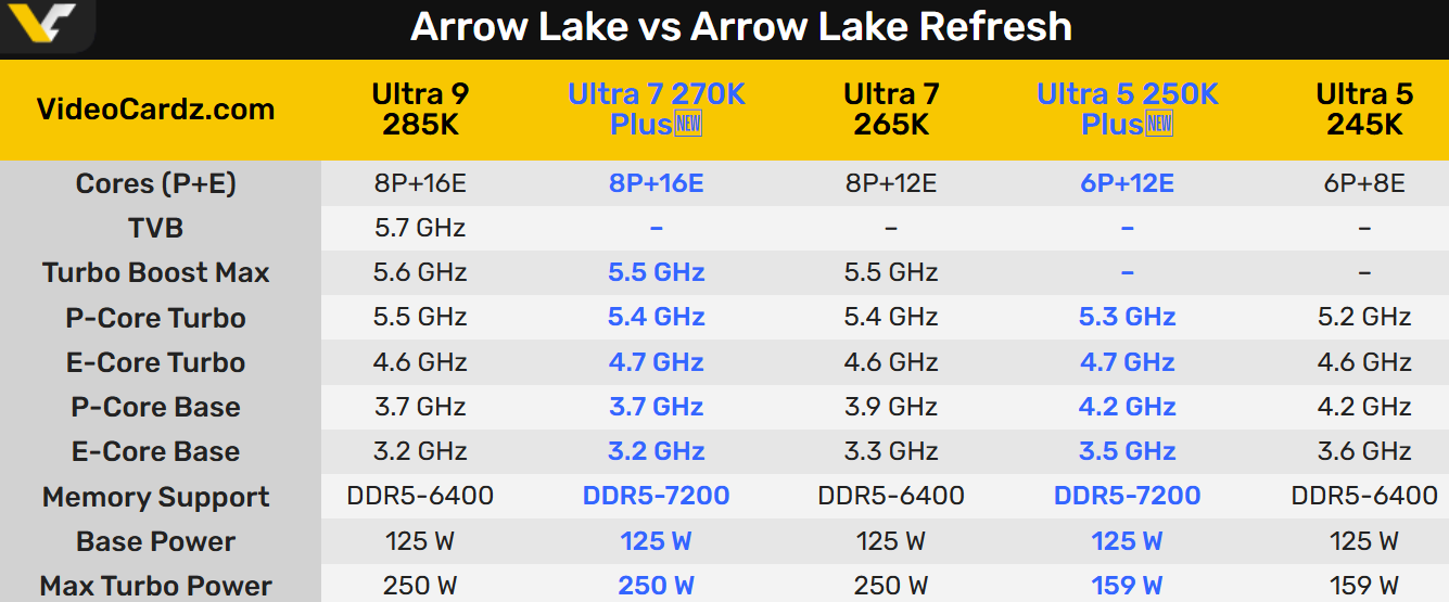 酷睿Ultra 5 250K Plus也多了4个E核,同时P核基础和加速频率高了100MHz
