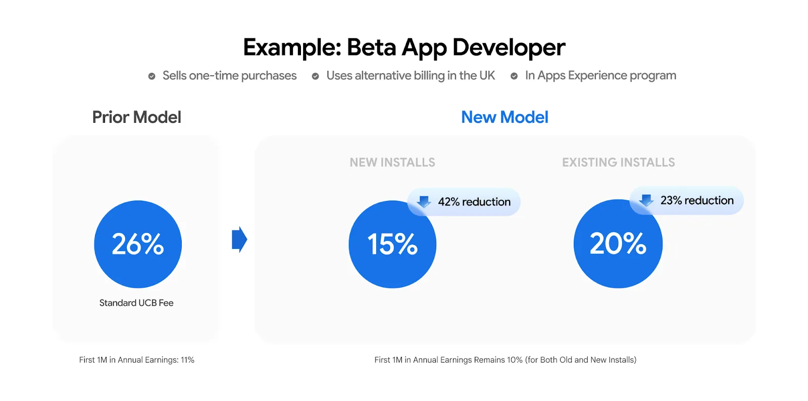 Google今日宣布,不再等待与Epic Games的和解协议获批,即刻推进多项重大变革,这些变革将从即日起全球逐步推出,直至2027年。据Google Android主管Sameer Samat在开发者博客中透露,从6月30日起,美国、英国和欧洲经济区(EEA)的应用商店服务费将从30%降至20%或更低;同时,开发者若选择使用Google Play计费系统,将额外收取区域特定的5%计费费率,与服务费分开计算。