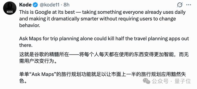 有网友评价:单单Ask Maps功能,就足以让市面上一半的旅行规划应用黯然失色。