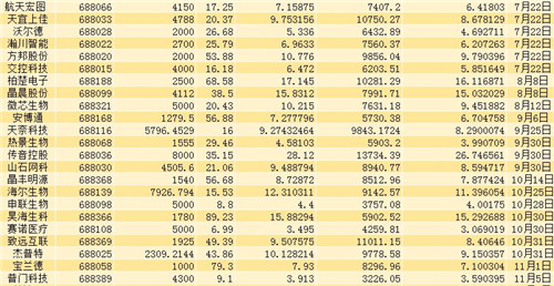 余下的公司中,仅有澜起科技与金山办公发行量过亿,前者接近1.13亿股,净募集27.46亿元资金;后者为1.01亿股,净募资44.59亿元。发行量最低的是安博通,发行1279.5万股,净募集6.7亿元资金。净募集资金最少的则是龙软科技,发行1769万股,净募资3.24亿元。