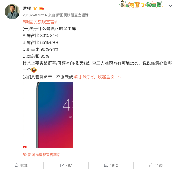 而在之前的预热中,常程还在微博上直接@小米手机,表示“不服来战”。