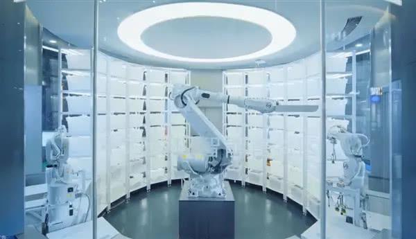 与其说这个无人售货店是一个店,倒不如说是一个大型的自动售货机。因为它通体封闭,购买前消费者既无法接触商品也不能进行体验。商品的拣选和出货完全依靠机械臂来完成。通过透明的玻璃,消费者可以看到店铺里一大两小个智能机械臂的工作情况,大机械臂抓取陈列箱运至操作台,小机械臂抓取货物投放至出货口,反应精准迅速,科技感十足。