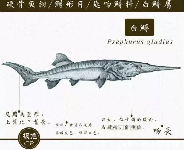 长江白鲟(Psephurus gladius),又称象鱼,是国家一级保护动物,属于匙吻鲟科鱼类,最早出现在白垩纪,现今存货的仅有两属两种,分别分布在中国长江及美国密西西比河流域,长江白鲟是中国特有物种,长度可达两三米,号称中国淡水鱼之王,是长江中仅次於中华鲟的大型古老鱼类。