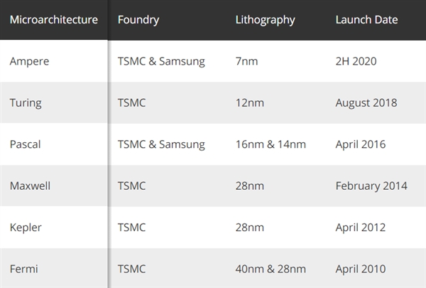 另外,安培显卡将踩着两年一更的时间点,预计在今年的SIGGRAPH大会期间公布,时间是8月份。