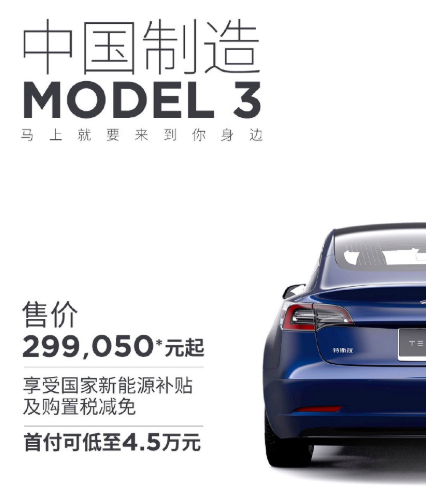 2020 年 1 月 3 日,特拉斯官方发布消息,宣布在中国制造的 TESLA Model 3 车型马上到来,将于 1 月 7 日交付;但最令人瞩目的是价格——这款国产 Model 3 车型在享受国家新能源补贴及购置税减免之后,售价为 299050 起。