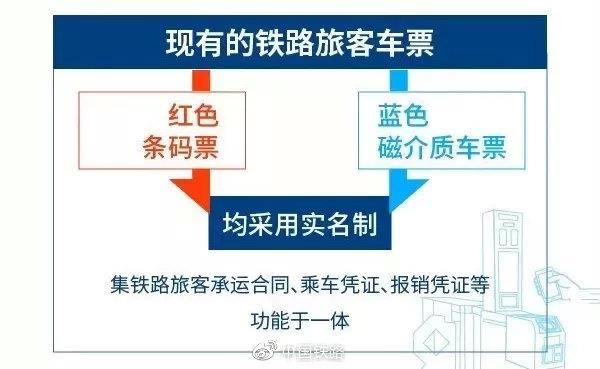 我国现有的铁路纸质车票,为红色条码票和蓝色磁介质车票两种,均采用实名制,集铁路旅客承运合同凭证、乘车凭证、报销凭证等功能于一体,旅客需凭车票乘车。