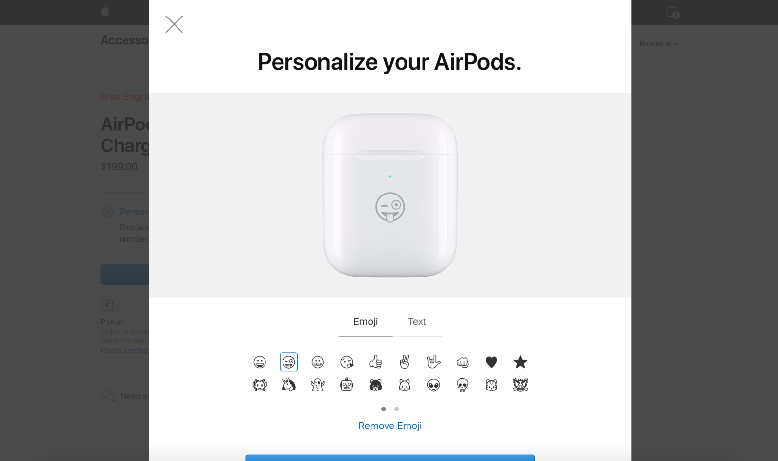 现在,消费者可以在苹果网上商城通过“免费定制”来选择定制耳机盒。