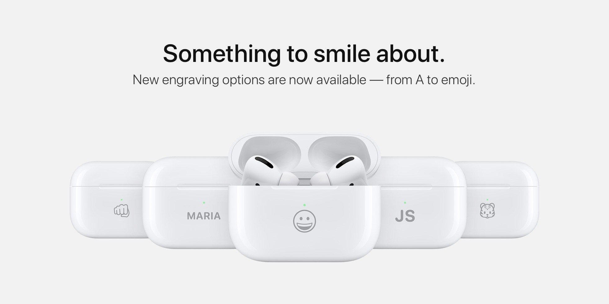 据外媒报道,随着去年第二代AirPods的发布,苹果开始为用户提供了在充电盒上镌刻定制图案的选择。今日,这家公司宣布了新的选择--首次推出了更大文字和表情的AirPods充电盒定制服务。“全新的个人镌刻选择来了,从文字到表情符合都能刻,”苹果在其官网的一个banner上写道。