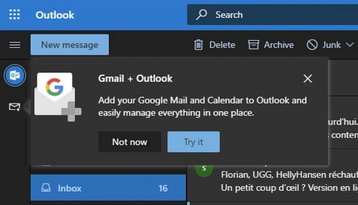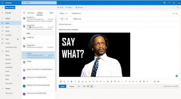 Edge浏览器之外,微软在自家邮件服务Outlook中还更好地整合了谷歌的Gmail和Google