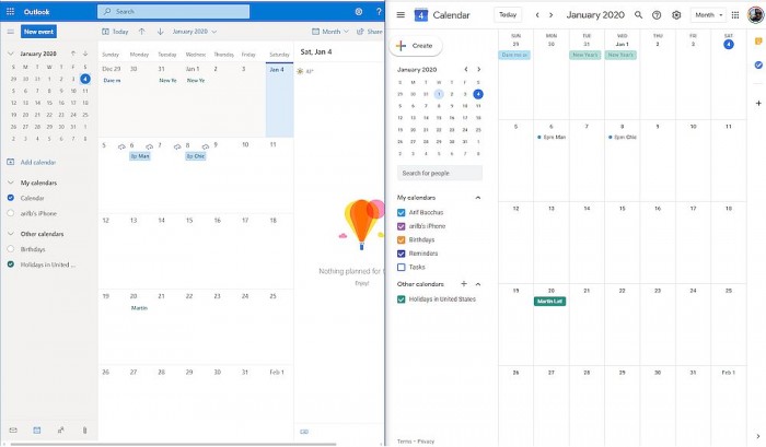 而在新版本中值得称道的就是整合了Google Calendar。在Outlook.com上显示了和外媒编辑所使用的Pixel 3 XL手机上相同的日历安排和约会信息。