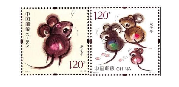 据了解,庚子鼠年生肖邮票为1套2枚,图案内容分别为“子鼠开天”和“鼠兆丰年”,面值均为1.2元。