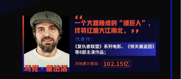 2020年已经到来,据猫眼专业版数据,截至2019年12月30日中午12点,中国电影市场一共有11位百亿票房影人诞生。这11位百亿票房影人分别是:吴京、黄渤、斯嘉丽·约翰逊、小罗伯特·唐尼、杜江、道恩·强森、沈腾、克里斯·埃文斯、邓超、克里斯·海姆斯沃斯、马克·鲁法洛。