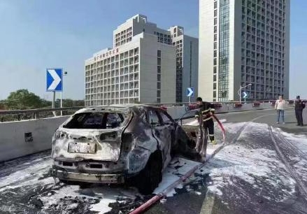 从网友提供的另一段视频来看,交警正在对现场情况进行控制,而这辆雷克萨斯已经被大火包围,火势猛烈冒出大量浓烟,并出现多次爆炸声,随后车辆几乎被烧毁。