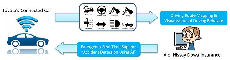 据外媒报道,丰田与MS&AD保险集团共同研发了创新型的事故响应服务系统,其能够从联网汽车驾驶终端获取汽车发生事故前后的驾驶数据,同时还能够通过车身可视化技术,探测车辆的驾驶行为及周边环境,然后通过人工智能技术(AI)进行事故检测。