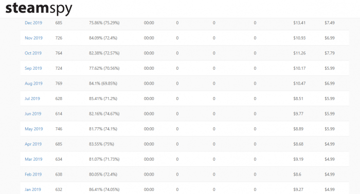另外SteamSpy还显示2020年1月Steam商城的总计游戏数量为34278款,相比2019年1月同期增长了7000。2019年Steam开始对库中的游戏上架进行严格筛选,并剔除了很多挂羊头卖狗肉的低劣游戏,相信2020年能够在Steam商城维持上架的游戏和以往相比要更少一些。